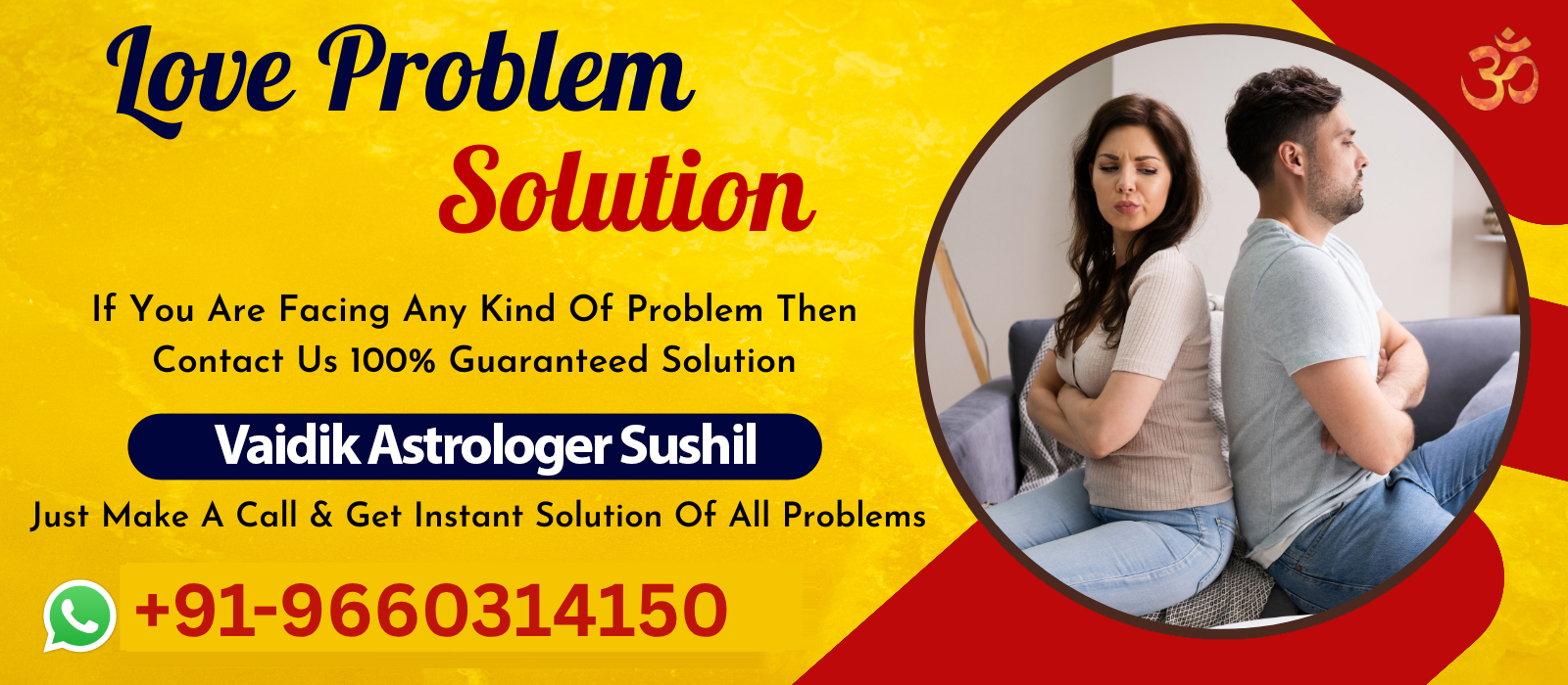 If you are facing any problem in your life then feel free to call Vaidik Astrologer Sushil Ji at +91-9660314150, he will solve your problem very soon and provide you with a happy life. Vaidik Astrologer Sushil Ji is very expert in Love back, if you love someone and by some misunderstanding, you lost him/her then don't worry about it just contact to Love Back Specialist Vaidik Astrologer Sushil Ji he will solve this problem very easily and you will get your Love for forever in your life.